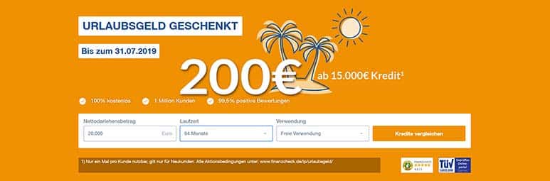 FINANZCHECK.de Urlaubsgeld 200 Euro Veröffentlicht 30. Juli 2019 bei 773 × 255 in FINANZCHECK.de Urlaubsgeld 200 Euro ← Zurück Weiter →